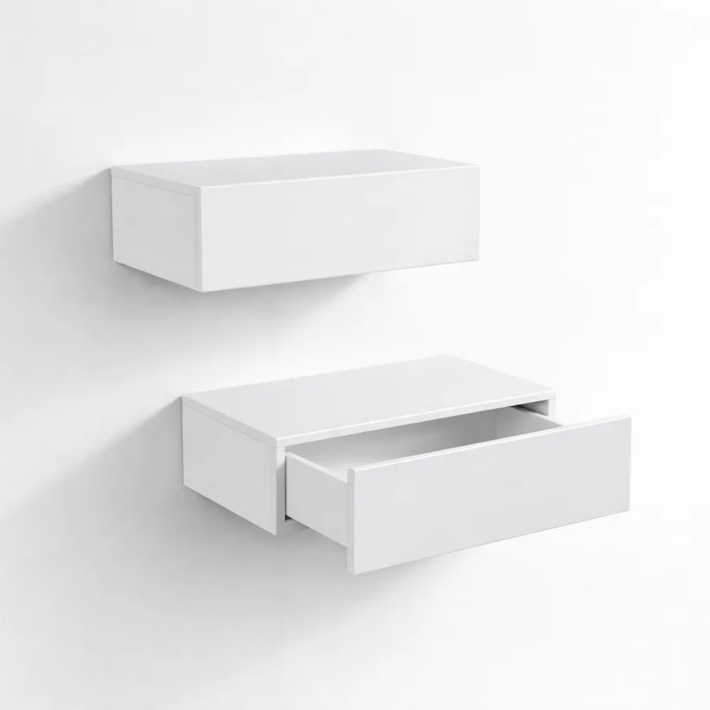 Set di 2 Comodini da Parete con Cassetto - Bianco