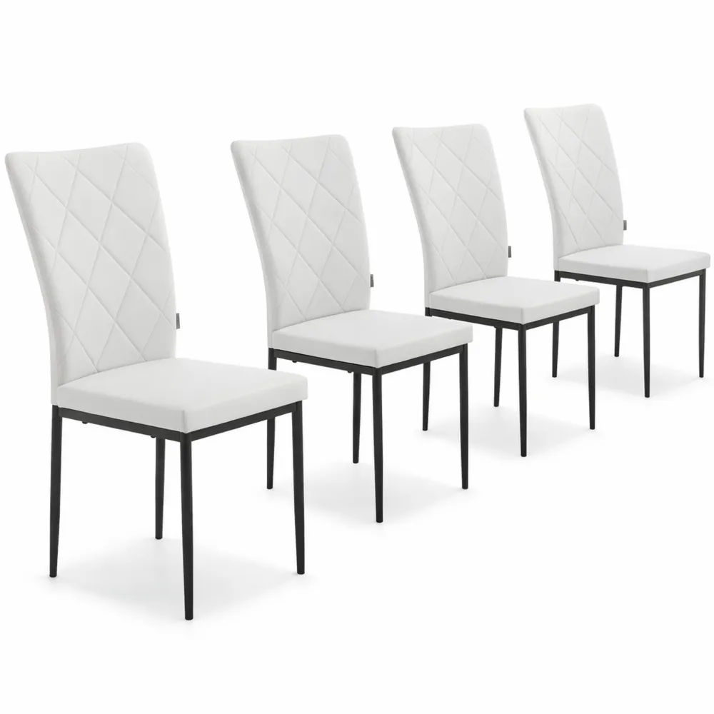 Set di 4 Sedie da Pranzo Imbottite con Schienale Alto e Gambe in Metallo, Bianco